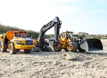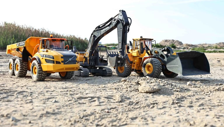 Nuotoliniu pulteliu valdomi RC sunkvežimiai, eskavatoriai ir kita statybų technika