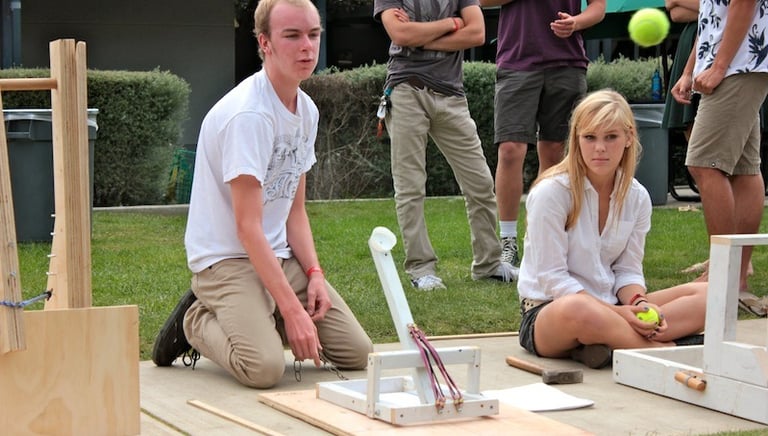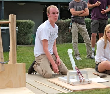 Katapultos žaidimas - linksma pramoga, kurioje dalyviai didžiule katapulta šauna minkštus kamuolius į taikinius