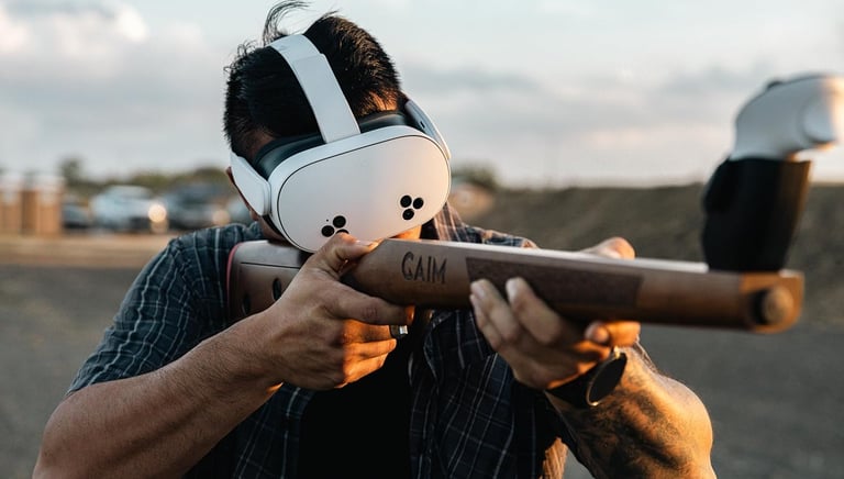 Praktinis šaudymo įgūdžių lavinimas VR aplinkoje,naudojant saugius treniruočių ginklus - pistoletą ir medžioklinį šautuvą.